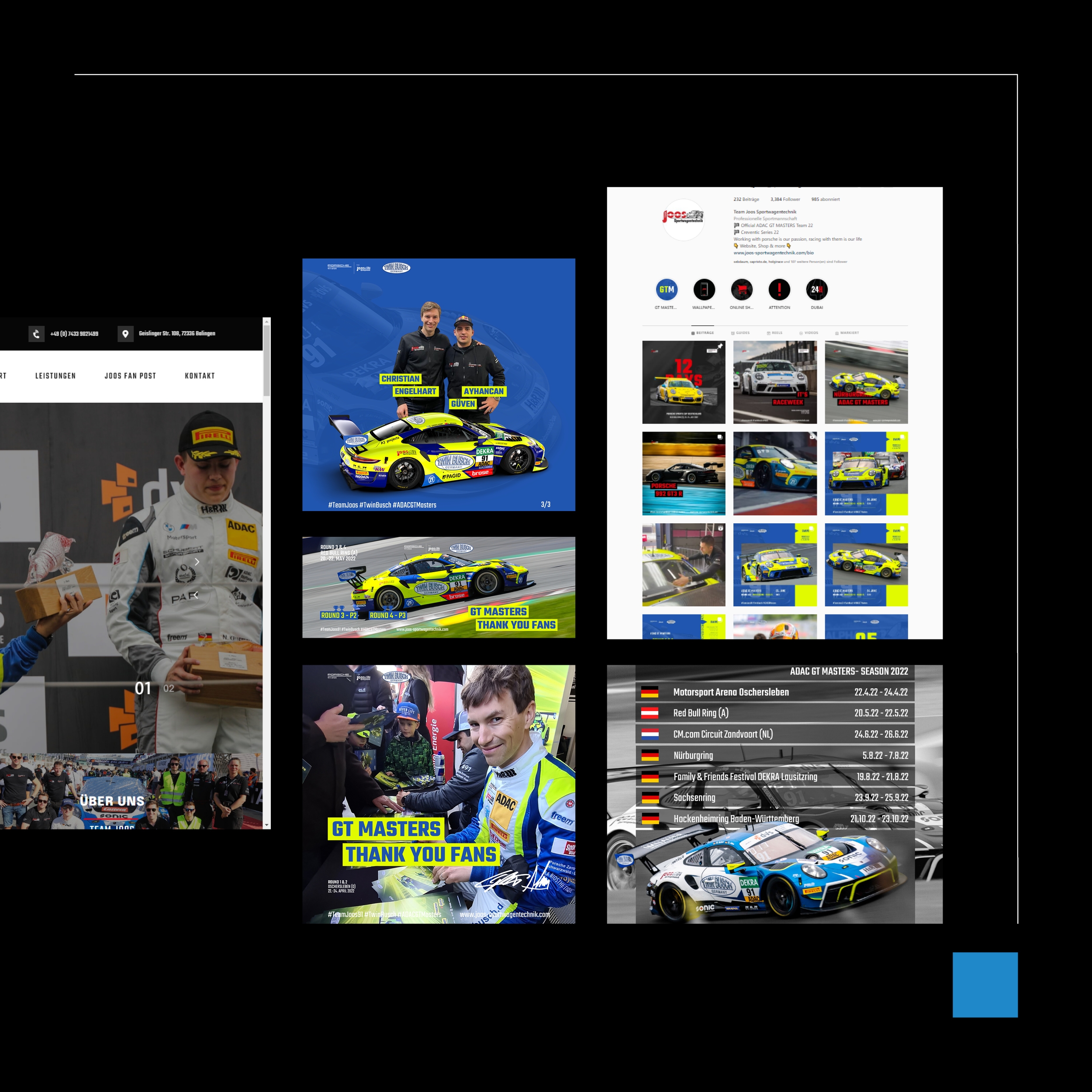 Durch diese Maßnahmen wurde der Markenauftritt von Joos Sportwagentechnik professionalisiert und sichtbar gestärkt – sowohl für Motorsportfans als auch für Partner und Sponsoren.